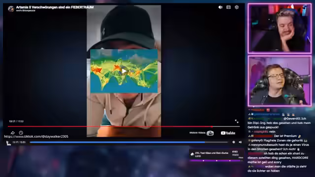 03:03:13Der Streamer untersucht verschiedene im kursierende Mythen über die Artemis-Mission. Er zeigt auf, wie manche Leute ohne Hintergrundwissen Theorien verbreiten, etwa die Frage, warum man keine Flugzeuge im Weltall sieht. Kianuschs Theorie über gefakte Bilder wird mit Erklärungen zur Perspektive und Wolkenbildung widerlegt. Der Streamer betont, wie wissenschaftliche Fakten oft durch pseudowissenschaftliche Theorien ersetzt werden. Er stellt die Verwirrung über die korrekte Darstellung der Erde in Satellitenbildern dar und zeigt, wie unkritisch viele Menschen solche Theorien akzeptieren.
