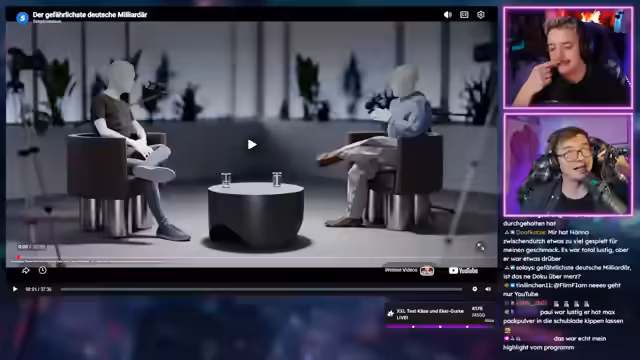 01:00:47Der Streamer beginnt mit einem React-Video über Peter Thiel, den als gefährlich geltenden deutschen Milliardär. Thiel wird als einflussreiche Persönlichkeit des Silicon Valley vorgestellt, der unter anderem PayPal und Palantir mitgegründet hat und starken politischen Einfluss hat. Das beleuchtet Thiels Ansichten über Demokratie, seine Geschäftspraktiken und seine frühen Prägungen durch das Leben unter dem Apartheid-Regime in Namibia.
