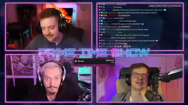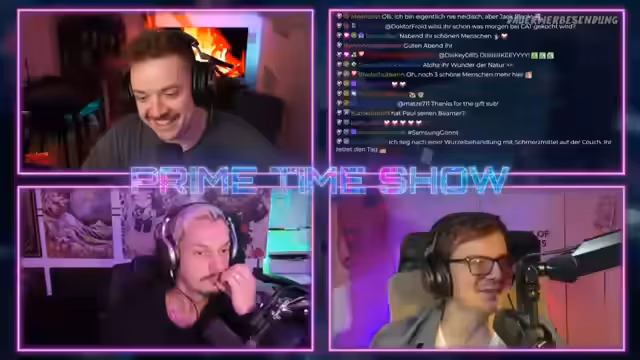 00:18:21Der Streamer begrüßt die Zuschauer herzlich zur 'PRIME TIME SHOW' und schafft eine lockere, hohe Atmosphäre. Er interagiert intensiv mit dem Chat, beantwortet Grüße und gibt lange aus dem Chat vorkommende Nicknames wie Joggle, Nerdcrew, Okami und DK wieder. Der Streamer erwähnt verschiedene Themen, darunter die Rückkehr der 'Profidetektive' und die Verwirrung um die beiden Boote, was auf Insiderwitze oder wiederkehrende Running Gags hindeutet.