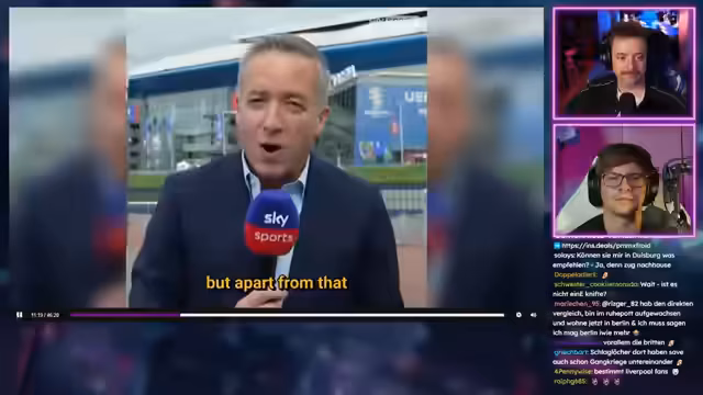 00:45:37Die Hauptattraktion des Streams ist die Analyse des Videos 'Deutsche Bundesländer in der Nusschelle 3' über Nordrhein-Westfalen. Der Streamer und sein Co-Moderator kommentieren humorvoll und kritisch die Charakteristika des Bundeslands, darunter die graue Betonlandschaft, die Großstädte wie Köln und Düsseldorf, und den legendären Kölner Dom. Sie diskutieren auch die Ruhrgebiets-Kultur und das Ruhrpott-Image.
