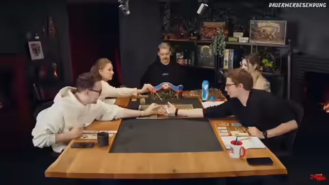 04:37:59Nachdem ein Spieler einen gezielten Angriff mit einem Flaschengeisten startet, wird eine wichtige Kampfentscheidung getroffen. Nadine wirft einen Heiltrank ein und gibt ihn einem Teammitglied, das knapp am Tod steht. Trotz des Erfolgs wird Gronkh durch einen gezielten Schlag aus dem Kampf genommen, was zur Nachfolge der verbleibenden Orks führt. Die Helden kämpfen sich durch eine Raum voller Monster, wobei der Fokus auf der Effektivität der einzelnen Züge liegt. Die spielerische Taktik besteht darin, die Orks systematisch zu dezimieren, indem man ihre Reihen lückenhaft macht, um den Ausgang des Raumes zu erreichen. Es wird eine letzte Entscheidung darüber getroffen, ob man den Folterbank-Gefangenen befreit oder eliminiert.