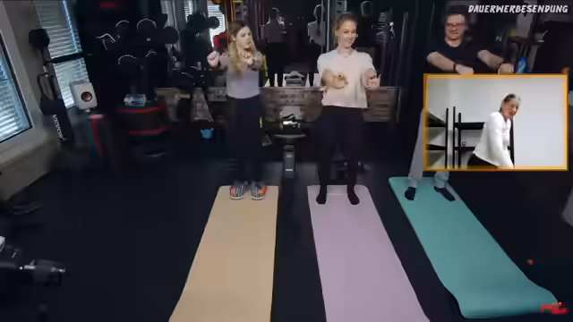 02:24:23Nach dem Ende der HeroQuest-Runde erfolgt der Übergang zum donnerstäglichen Sportprogramm, ein gemeinsames Workout, das live im Stream stattfindet. Die Teilnehmer, einschließlich des Streamers, führen verschiedene Übungen durch, wie Schulterkreisen und Krabbenkniebeugen. Der Fokus liegt auf dem functional training, bei dem Körpergewicht statt Gewichte genutzt wird, um Kraft und Körperspannung zu trainieren. Das Training ist offen für alle Fitnesslevel.