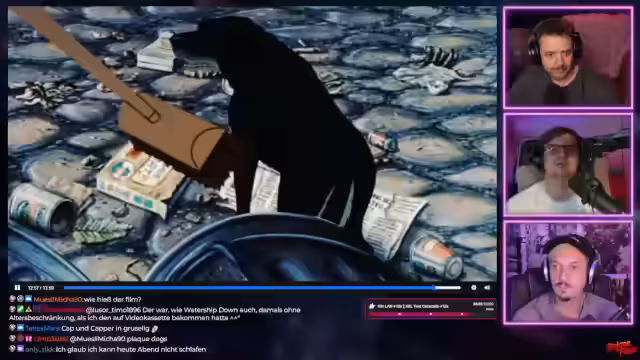 01:12:06Der Stream beginnt mit einer Diskussion über sehr düster und brutal inszenierte Animationsfilme der 1980er Jahre, die heute oft als verstörend empfunden werden. Ein zentrales Beispiel ist ein Pferd, das aufgrund seiner hohen Suizidalität betrachtet wird. Die Szene, in der es den Tod herbeisehnt und sich in den Augen freut, wird als absoluter Wahnsinn beschrieben. Als eine der krassesten und emotional heftigsten Sachen wird eingestuft, was den Status des Films als absoluten Klassiker unterstreicht.