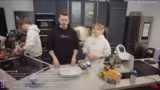 Es wurde ein neues Format für kulinarische Experimente angekündigt. Den Auftakt machte ein unkonventionelles Tiramisu mit Erdbeeren und Matcha-Tee. Die Zutaten wurden verarbeitet und in Schichten aufgebaut. Ein Helfer war an der Seite beteiligt. Nach der Kühlung wurde das Dessert mit einem selbstgemachten Pistazien-Crunch verfeinert und zur Verkostung präsentiert.