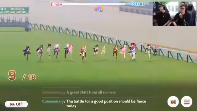 02:01:24Für das anstehende G1-Rennen wird die Läuferin intensiv vorbereitet. Das Team konzentriert sich auf das Training und die Freischaltung von wichtigen Skills wie 'Prepare to Pass'. Trotz guter Vorbereitung und hohen Erwartungen verläuft das Rennen enttäuschend. Durch einen späten Start und die Stärke der Konkurrenz gelingt es der Läuferin nicht, eine Platzierung in den Top 5 zu erreichen, was ihre Karriere in ernste Gefahr bringt und zum Notschlachtungsmodus zwingt.