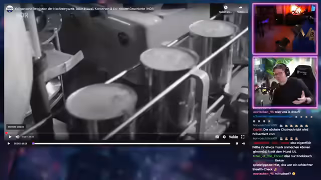 02:47:39Der Streamer und Paul bereiten sich darauf vor, Videos aus den Vorschlägen der Community anzusehen. Sie stoßen auf verschiedene Vorschläge, darunter eine Doku über den WDR Computer Club Klassik und eine kuriose Nachricht über den Rücktritt von Sahra Wagenknecht. Sie diskutieren auch über die Plattformen Confluence und Jira, die Paul auf den Keks gehen, während der Streamer Jira von seiner Zeit bei Game Fortschrift in guter Erinnerung hat. Als Video-Vorschläge stehen zur Auswahl: "Pucks, Pommes und Probleme. Saisonauftakt im Eisstadion in Hannover", "Kulinarische Revolution in der Nachkriegszeit. Toast Hawaii, Konserven" und "Simplicissimus: Die unglaublichen Attentate auf Hitler". Sie entscheiden sich für die "Kulinarische Revolution"-Doku, die 44 Minuten dauert, da sie gut zu Pauls Essensbestellung passt. Der Streamer hat Döner bestellt und Paul holt sich ebenfalls etwas zu essen. Während Paul seinen Döner isst, fordert er die Zuschauer auf, im Chat aktiv zu werden und ihre Gedanken zu teilen, um die Stimmung aufzulockern. Sie sprechen kurz über Breach Bunny und die neuen BoostBox-Systeme. Der Streamer startet die Doku, die sich mit der Einführung neuer Lebensmittel wie Tütensuppen, Tiefkühlkost und Gerichten wie Toast Hawaii in der Nachkriegszeit befasst. Sie kommentieren die damalige Wahrnehmung von Konservenessen als Luxus und die Werbung, die Meisterköche suggerierte, die die Produkte persönlich abfüllten.
