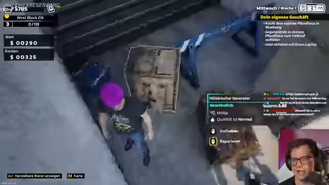 01:58:07Für den nächsten Tag plant der Streamer, bessere Werkzeuge wie einen Level-2-Überprüfer und ein Reparaturwerkzeug zu kaufen, um Gegenstände mit höherem Wert reparieren und verkaufen zu können. Währenddessen wird im Inventar ein wertvoller Silberring gefunden und der Verkauf weiterer Gegenstände gestartet, um Kapital für die Anschaffung der neuen Ausrüstung zu generieren. Der Fokus liegt auf der Skalierung des Storage-Hunter-Geschäfts.