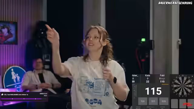 07:22:20Die Spieler wechselten erneut zu einem Single-Out-Spiel mit 301 Punkten, um den Stream zu einem entspannten Ende zu führen. Das Hauptziel war weniger der Wettkampf als der reine Spaß am gemeinsamen Dart spielen. Es wurden verschiedene Pfeile getestet und die Wurftechnik besprochen. Der Fokus lag darauf, Pfeile nah beieinander zu landen, um das Gefühl für das Spiel zu verbessern. Die Runden wurden durch Überwürfe und technische Unschärfen unterbrochen, was aber den lockeren und humorvollen Charakter des Spiels nicht störte.