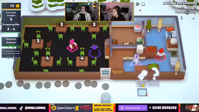 04:21:13Der Betrieb des Restaurants wird zunehmend chaotisch. Eine lange Schlange von Gästen führt zu Stress und Zeitdruck, da die Streamer den Andrang kaum bewältigen können. Die Zusammenarbeit zwischen den Spielern ist angespannt, es kommt zu Missverständnissen und Verzögerungen bei der Bestellannahme und der Servierung. Ein Roboter, der angeblich das Sauberhalten übernehmen soll, erweist sich als unbrauchbar. Nachdem sie eine Hürde überstanden haben, erreichen sie den Status eines Franchise-Unternehmens, was ihnen neue Möglichkeiten und Upgrades für das Restaurant eröffnet.