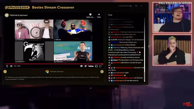 04:13:17Die Kategorie 'Bester Traumoment' wird eingeleitet, wobei ein 'Trimax Raid' als Beispiel genannt wird, der jedoch als unangenehm empfunden wird, da er auf Kosten einer kleinen Streamerin geht. Ein weiterer Clip zeigt einen Streamer, der sich über die Aussprache einer Frau lustig macht, was ebenfalls kritisiert wird. Ein Telefonjoker, bei dem ein Anrufer nach dem englischen Wort für 'Bein' fragt, um 'Leg meine Eier' zu sagen, wird als 'brutal' und 'witzig' gefeiert. Bei den 'Besten Jumpscares' werden verschiedene Clips gezeigt, darunter Schlos erschreckende Reaktionen, die als 'witzig' und 'echt' beschrieben werden. Ein weiterer Jumpscare zeigt Mauki, der Ifas Geburtstag überrascht, was als 'süß' und passend zur Musik empfunden wird. Die Kategorie 'Bestes Streamer-Duo' wird diskutiert, wobei Gronkh und Funk Royale sowie NoWay und Metashi als Favoriten genannt werden. Schließlich wird ein 'Most Serial Moment' vorgestellt, bei dem Heddo Musik mit Getschen macht, lange bevor Electric Carver berühmt wurde, was als 'geil' und 'stark' bewertet wird.