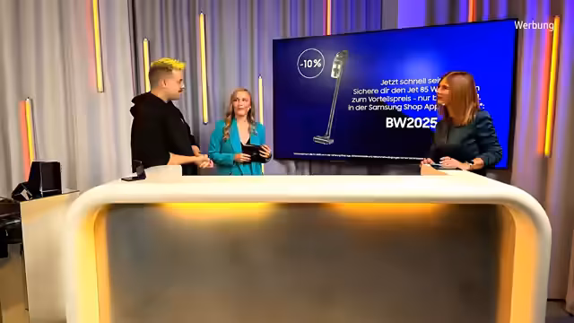 Lynn begrüßt zur Samsung Black Weeks Präsentation, bei der Alexia und Olli exklusive Deals vorstellen. Das 'Swipe & Match'-Feature ermöglicht kostenlose Zweitprodukte. Spielerische Aktionen wie 'What Warrior' bieten zusätzliche Gutscheine. Highlights sind das Galaxy Z Flip 7 mit KI-Funktionen und der Jet 85 Wet & Clean. Zudem werden Gewinner von Galaxy S25 Ultra und Galaxy Z Fold 7 gekürt.
