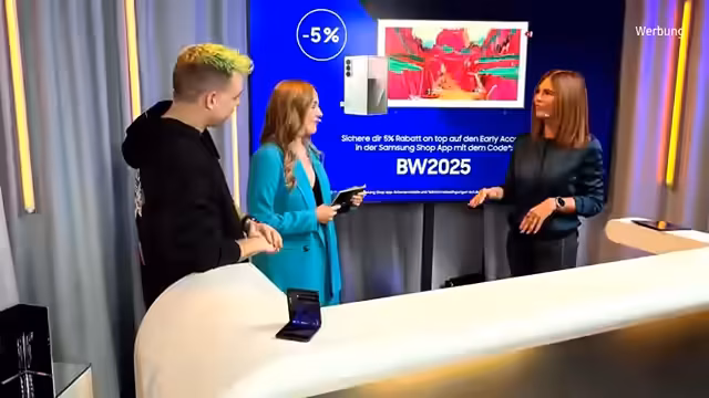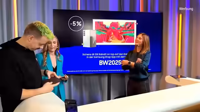 00:15:28Olli präsentiert direkt die wichtigsten Deals, die über die Samsung Shop App zugänglich sind. Er demonstriert die App auf seinem Samsung Galaxy Z Fold 7 und erklärt den Black Friday Early Access, der im Rahmen der Black Weeks stattfindet. Mit dem Code BW2025 erhalten Kunden zusätzlich 5% oder 10% Rabatt auf viele Produkte. Ein Highlight ist das 'Swipe & Match'-Feature, bei dem Nutzer eigene Bundles aus verschiedenen Kategorien wie Mobile oder Haushaltsgeräte zusammenstellen können. Dabei erhalten sie das zweite Produkt des Bundles kostenlos. Olli zeigt Beispiele, wie man ein Galaxy S25 Ultra mit einer Waschmaschine oder einem Gaming-Monitor kombinieren kann, wobei der Preis des zweiten Artikels entfällt. Die Aktion läuft bis zum 18. und gilt exklusiv in der Samsung Shop App.