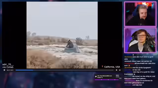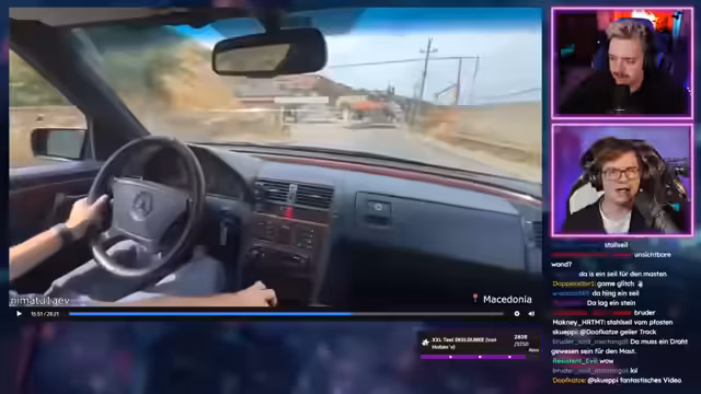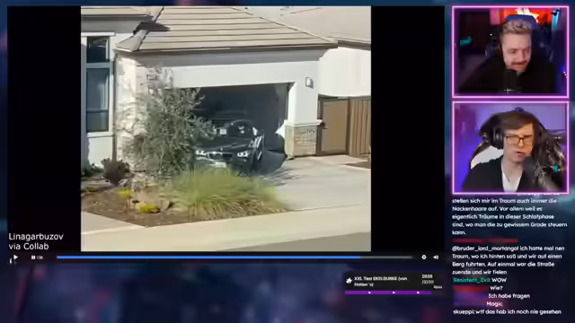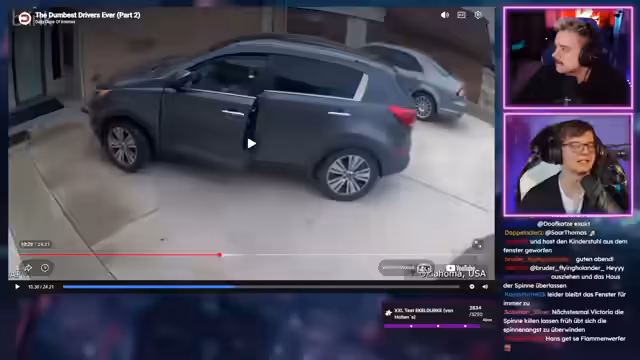 00:37:33Nach der Ankündigung, dass heute keine normale Quiz-Show stattfindet, weil die Zusammenarbeit mit dem SWR für Reaktionsinhalte finalisiert wurde, beginnt die Reaktion auf ein Video von der Webseite drfreud.de. Das mit den meisten Votes vorgeschlagene Video zeigt 'Die dümmsten Autofahrer Teil 2'. Streamer und Chat reagieren überwiegend ungläubig und amüsiert auf die gezeigten Verkehrsunfälle und Verkehrsdelikte.