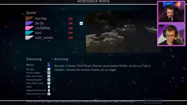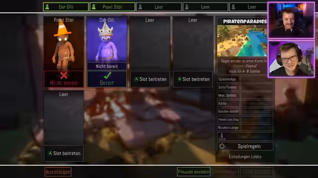 01:50:17Es wird festgestellt, dass ein Teilnehmer aufgrund von Internetproblemen abgesagt hat. Es wird über die Regeln von Pummelparty gesprochen, die als Mario Party mit Gewalt beschrieben werden. Die Teilnehmenden werden in die Gaming-Ansicht gebracht und es wird sich darauf vorbereitet, gottlos auf die Kalimbers loszugehen. Es wird über die Anzahl der Pokale zum Sieg diskutiert und sich auf sieben geeinigt. Es wird festgestellt, dass sich die Teilnehmenden noch nicht auf Steam befreundet haben und dies wird kurz geändert. Ein Teilnehmer bedankt sich für einen Raid. Es wird über die Steam-IDs und Freundescodes gesprochen, da es Probleme mit Steam gibt. Ein Teilnehmer erstellt eine Lobby und schickt die Freundescodes. Es wird über die Anzahl der Freunde auf Steam gesprochen und sich für einen Avatar entschieden. Die Freundschaftsanfragen werden angenommen und es wird sich über die Maps und Einstellungen geeinigt. Es wird sich für eine Kategorie entschieden und ein Teilnehmer klaut einem anderen die Farbe. Es wird sich über die Avatare und die gewonnenen Spiele lustig gemacht.