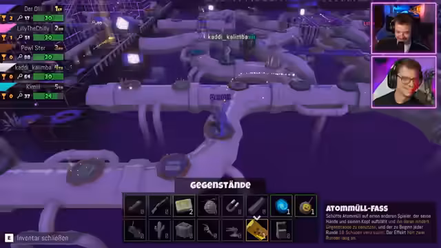 02:27:39Die Spieler tauschen sich über ihre Erfahrungen und Meinungen zum Spiel aus, wobei die unterschiedlichen Meinungen hervorgehoben werden. Es wird überlegt, wie man sich am besten positioniert, um Schlüssel zu sammeln und Trophäen zu gewinnen. Ein Minispiel, bei dem man andere Spieler abschießen muss, wird als frustrierend empfunden, insbesondere wenn man von oben angegriffen wird. Es wird überlegt, ob man das Spiel vorzeitig beenden soll, da es sehr zeitaufwendig ist. Es wird überlegt, ob man die verbleibenden Pokale noch erreichen kann, oder ob man das Spiel lieber abbrechen sollte. Ein Minispiel, bei dem man auf wackelnden Blöcken stehen muss, wird als schwierig empfunden. Es wird überlegt, ob man sich dem Schicksal ergeben oder versuchen soll, das Spiel zu gewinnen. Die Community wird nachbestellbare Popschutze für Mikrofone gefragt. Der Besuch von ARD im Stream wird gefeiert, und es wird über Jugendwörter diskutiert. Die Bedeutung einer Geste (Zeigefinger auf Daumen klopfen) wird erfragt, aber niemand kennt die Antwort.