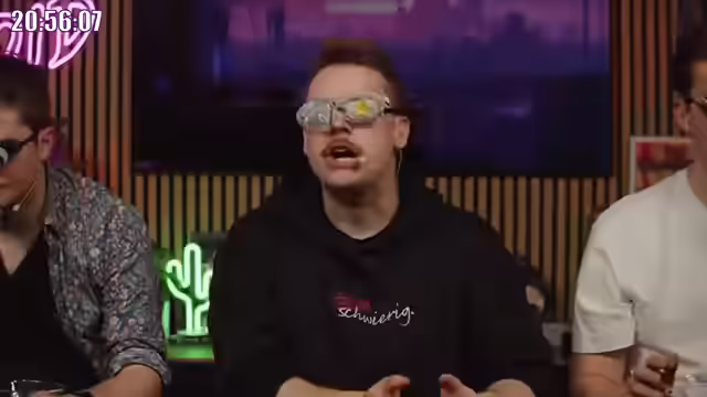 03:06:47Die erste Gaming-Olympiade beginnt mit einer aufwendigen Bühnenshow, bei der die Teilnehmer um 1000 Euro in bar spielen. Es gibt sieben Disziplinen, bei denen Gold (drei Punkte), Silber (zwei Punkte) und Bronze (ein Punkt) vergeben werden. Die Teilnehmer Daniel, Nils und Franzi (die kurzfristig für eine erkrankte Linda eingesprungen ist) werden vorgestellt. Die erste Disziplin ist „Getting Over It“, ein Spiel, das für seinen hohen Schwierigkeitsgrad und seine unberechenbare Physik bekannt ist. Die Spieler haben drei Minuten Zeit, um so hoch wie möglich zu klettern. Daniel zeigt eine solide Leistung, während Nils mit viel Power startet und beeindruckende Fortschritte macht, indem er schnell auf den Baum klettert und sich geschickt abstützt. Franzi hat Schwierigkeiten mit der Steuerung und der Mausempfindlichkeit, was zu humorvollen Kommentaren führt.