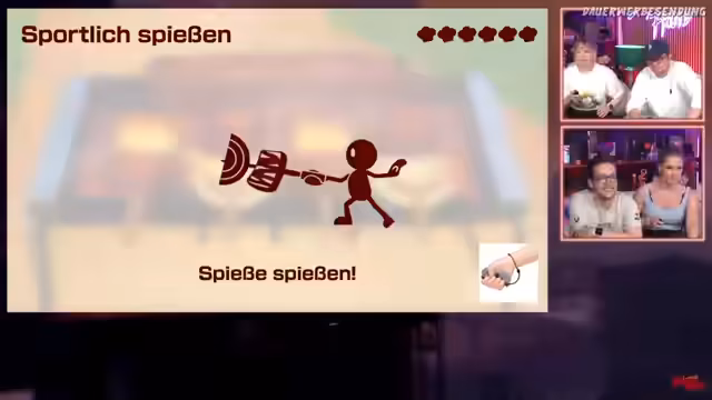 02:50:25Nach 'Rhythmusküche' folgen weitere Minispiele, bei denen die Streamer als Team agieren müssen. Ziel ist es, gemeinsam Zutaten für ein Gericht zu schnippeln. Die Kommunikation und Koordination sind entscheidend, wobei einige Spieler den Takt besser treffen als andere. Nach dem Spiel werden die Ergebnisse analysiert und über die Teamstärke diskutiert, wobei man sich über die erreichte Punktzahl freut.