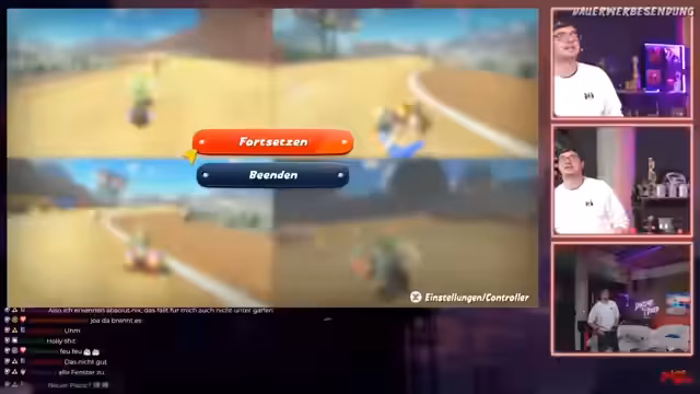 04:23:52Zu Beginn der Rennen gibt es einige Probleme mit der Steuerung und Controller-Verbindung. Ein Spieler muss seinen Controller verbinden und fragt nach den Bedeutung von Einstellungen wie 'Schlausteuerung' und 'Auto-Item'. Die Steuerung wird als ungewohnt beschrieben, da man sich plötzlich an die Bedienung neu gewöhnen muss, was zu anfänglichen Fehlern führt.