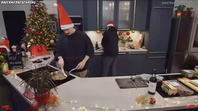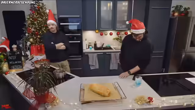 02:26:54Die erste Gewinnerin des Film-Pakets wird via Losung ermittelt und ist Lara, die bereits seit zwei Jahren Teil der Community ist. Da sie zu diesem Zeitpunkt offline ist, wird die Benachrichtigung über Discord angekündigt. Im Anschluss daran wird intensiv über den Film und dessen Konzept diskutiert, insbesondere die moralische Frage, ob man mit einer Waffe wie einer Axt zur Weihnachtszeit Bösewichte bestrafen sollte. Gleichzeitig wird das Beef Wellington mit Eigelb bestrichen und grobem Salz bestreut, bevor es in den Backofen geschoben wird.