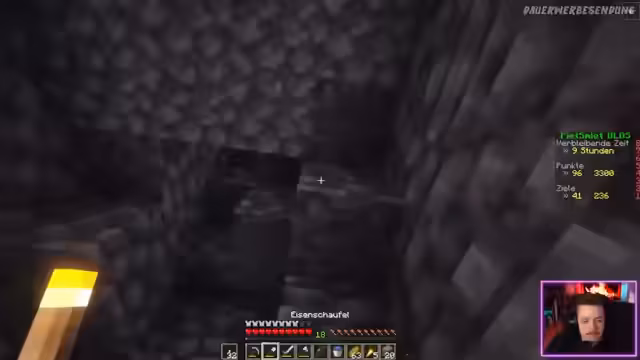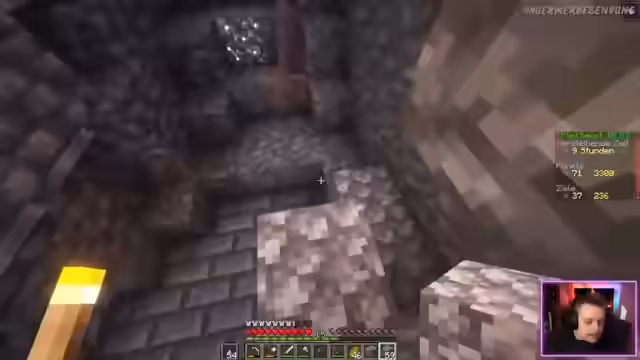 00:28:14Während der Erkundungstour stößt der Streamer auf einen Strand und überlegt, nach einem Axolotl zu suchen, um es mit einem Eimer zu fangen, was ein Achievement wäre. Da es jedoch Abend wird, wird beschlossen, zum Dorf zurückzukehren. Allerdings verliert der Streamer im dichten Wald die Orientierung und verläuft sich. In der Not wird beschlossen, sich für die Nacht einzugraben, um vor Monstern sicher zu sein. Während des Grabens wird nach der optimalen Höhe für das Finden von Eisen gefragt, und die Zuschauer geben den Tipp, dass Eisen auf Höhe 15 zu finden sei. Beim weiteren Graben werden Zombie-Geräusche gehört, was die Situation zusätzlich erschwert. Schließlich wird auf Höhe 19 tatsächlich Eisen gefunden, was die Stimmung aufhellt. Das Inventar ist jedoch schnell voll, was das Sammeln weiterer Ressourcen behindert. Trotzdem wird weiter gegraben und Kohle gefunden, um die Nacht einigermaßen effizient zum Farmen zu nutzen. Plötzlich werden Geräusche einer Festung vernommen, was die Neugier weckt, aber auch Vorsicht erfordert.