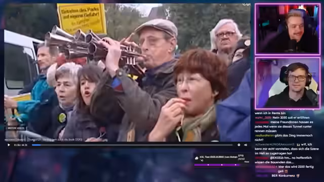 01:55:46Es wird die öffentliche Reaktion auf Stuttgart 21 beleuchtet, insbesondere die Proteste von Aktivisten, die sich teilweise nackt demonstrieren. Der Streamer macht dabei einen ironischen Side-Einwurf, dass man sich nicht auf die Idee bringen lassen sollte, deshalb die AfD zu wählen. Der Diskurs dreht sich um die Legitimität der Proteste und die Frage, wie man in einer Demokratie mit politischer Uneinigkeit und großer öffentlicher Kritik umgehen sollte.