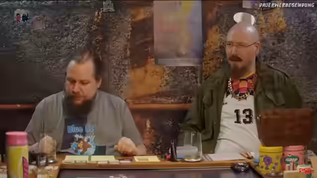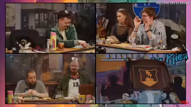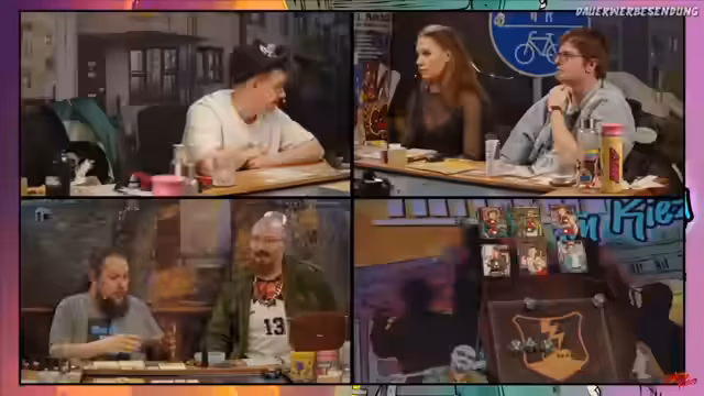 04:36:41Die Situation eskaliert zusehends. Ein Charakter nutzt den Gurkenglas als Waffe, um dem Gegner Nachteile zu verschaffen, während ein anderer zurückweicht, um sich einen Vorteil zu sichern. Daraufhin feuert der Gegner mit einer Maschinenpistola auf die Gruppe, was zu einem hektischen Ausweichen hinter Betonpfeilern führt. Eine bündige Frage nach der Nutzung von Dramapunkten für Teammitglieder beantwortet der Spielleiter fallabhängig und betont die Dramatik des Kampfes.