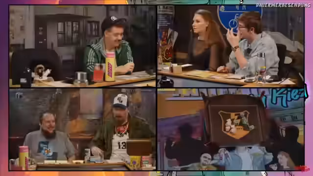 03:37:29Nachdem Schulz als 'Candy' an der Klingel des Penthouses gedrückt hat, öffnet Krautform Junior die Tür. Er ist überrascht, äußert aber, dass es eine 'schöne Überraschung' sei. Schulz schiebt ihn hinein und nennt sich Candy, während Tobi mit der Tasche ablenkt. Krautform Junior zeigt sich misstrauisch und beobachtet die beiden genau.