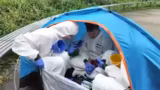 01:38:42Die Teilnehmer bereiten sich auf das Suströmming-Event vor, indem sie sich in ein sehr beengtes Wurfzelt quetschen. Es gibt technische Anpassungen, wie das Umschalten auf einen anderen Kanal für einen Restream. Teilnehmer, die nicht im Zelt sind, bleiben am Eingang, um den Ausgang zu blockieren und die Unterhaltung im Chat aufrechtzuerhalten.
