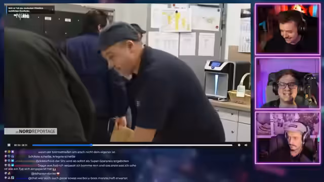 00:31:42Die Primetime-Show wechselte zu Reactions-Content, beginnend mit der Doku-Reihe 'Einsatz für die Deutsche Bahn'. Die erste Folge 'Stromausfall im ICE' startete und zeigte die täglichen Herausforderungen des Zugpersonals und der Bundespolizei. Während der Dokumentation wurden Pannen wie Stromausfälle und Konflikte mit Fahrgästen gezeigt, was zu unterhaltsamen und zynischen Reaktionen im Stream führte.