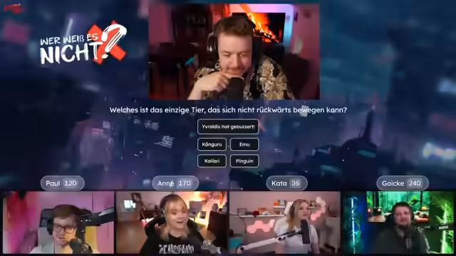01:03:41Das Quiz wird fortgesetzt, wobei zwischen den Fragen auch persönliche Anekdoten und humorvolle Einwürfe fließen. Nachdem die Frage nach dem Känguru geklärt wurde, wird eine abschließende Bemerkung über Ollis Unfähigkeit, sich rückwärts zu bewegen, getroffen, was zu einem Scherz über das Thema genitalien führt. Der Streamer fächert sich über den humorvollen und unkonventionellen Verlauf des Quizformats und gibt den Teilnehmern weiterhin die Möglichkeit, Punkte zu setzen und ihr 'Nicht-Wissen' zu unter Beweis zu stellen.