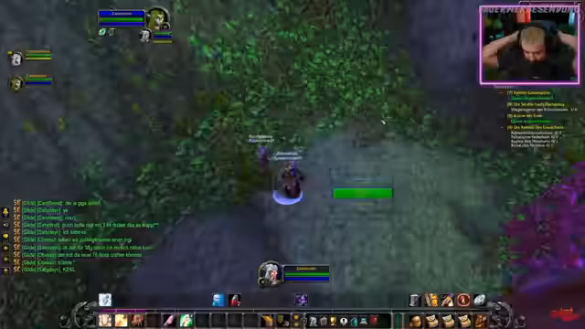 05:02:04Es wird aktiv nach Spielern für den Dungeon 'Black Fathom Deep' gesucht, um eine Gruppe zu bilden. Die benötigte Besetzung ist ein Tank, ein Heiler und zwei Damage-Dealer. Der Streamer zeigt sich erleichtert, als erfahrene Spieler wie Kevin und Lena sich der Gruppe anschließen, was den Erfolg des Dungeons wahrscheinlicher macht. Die Anführer der Gruppe geben wichtige Ratschläge an den Streamer, der als relativ niedrig leveler Charakter vorsichtig agieren muss, um nicht unnötig Aggro zu ziehen.