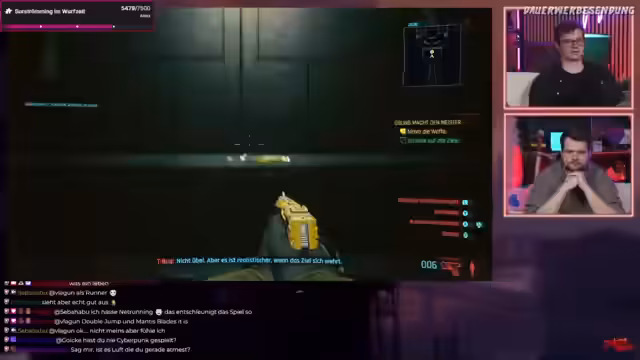 01:14:12Während des Cyberpunk-Spiels vergleicht der Streamer die Steuerungsmöglichkeiten. Er spielt zunächst mit dem Pro-Controller, wechselt dann aber zur Maus und Tastatur, um den Aim-Modus zu testen und dessen Vorteile zu demonstrieren. Er berichtet von einer Gewöhnungsphase, stellt aber fest, dass die Steuerung mit Maus und Tastatur im Vergleich zum Controller präziser ist und das Gameplay verbessert.