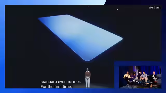 01:11:43Der lokale Stream wird für den globalen Galaxy Unpacked Event von Samsung kurz unterbrochen. Die Streamer kündigen an, auf ihren eigenen Kanälen weiter live zu bleiben. Während der Präsentation werden neue Samsung-Produkte wie ein 98-Zoll-Fernseher und Vision AI vorgestellt. Besonderes Augenmerk liegt auf der erweiterten KI, die durch Gestensteuerung und Bilderkennung ein immersiveres Erlebnis verspricht.