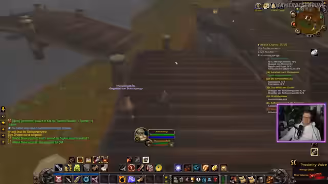 08:45:00Während des World-of-Warcraft-Gameplays wird die Gruppendynamik bei Kämpfen analysiert, wobei zu dritt effizienter als allein agiert wird. Es folgen Überlegungen zu Addons für Twitch-Namen-Anzeigen und die Optimierung von Quest-Abläufen, etwa in Teldrassil. Eingegangen wird auf geplante Events wie XXL-Scharf-Tests mit Nils und anderen, wobei vergangene Erfahrungen mit Kuchen- und Dosenbier-Tests als herausfordernd beschrieben werden. Die Bedeutung von MMO-Spielen als soziale Erfahrung wird hervorgehoben, insbesondere für Spieler, die frühe Spielzeiten verpasst haben.