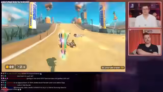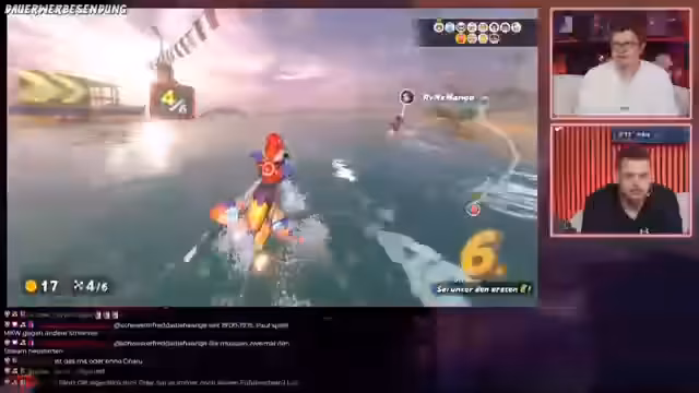 00:00:00Der Stream beginnt mit der Organisation eines Mario Kart World-Rennens in der Lobby. Dabei werden die Spielregeln festgelegt: Jeder Teilnehmer muss für verlorene Runden bezahlen, wobei der genaue Betrag und die Zahlungsverpflichtung nach dem ersten Rennen geklärt werden. Streamer wie Paul, Olli und Kim sind anwesend, während Jay krankheitsbedingt fehlt. Die Einstellung der Schwierigkeit wird auf „Schwer“ gestellt, um das Spiel anspruchsvoller und spannender zu gestalten. Die Runde beginnt, und sofort kommt es zu ersten Angriffen und Unfällen auf der Strecke.