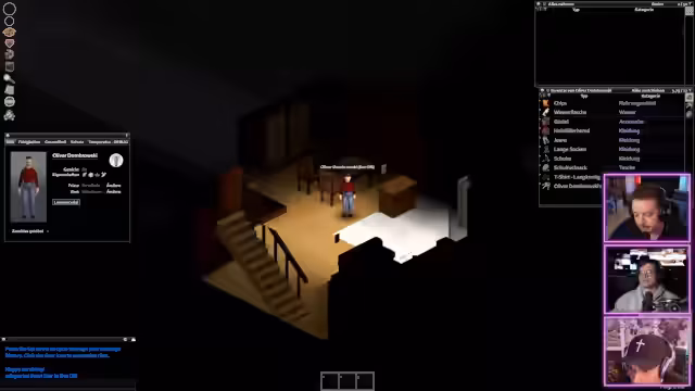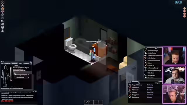 00:16:18Der Stream beginnt mit technischen Vorbereitungen. Da ein geplanter 'Copy & Taste' Stream aufgrund von Erkrankungen nicht möglich ist, entscheiden sich die Streamer, stattdessen gemeinsam das Spiel Project Zomboid zu spielen. Ziel ist es, als Trio in der Zombie-Apokalypse zu überleben. Der Streamer befindet sich im Büro, während seine Kollegen von zu Hause aus streamen. Zu Beginn gibt es erhebliche technische Schwierigkeiten, darunter eine instabile Internetverbindung, die zu Frame-Drops führt, und laute Hintergrundgeräusche.