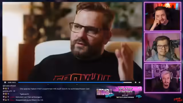 00:14:41Anfang März wird ein neues Pen and Paper namens 'Krawall im Kiez' im 90er-Jahre-Setting gestartet. Wer auf Instagram folgt, hat möglicherweise schon Kostüme dazu gesehen. Alle Infos gibt es mit dem Command !PNP. Es wird auch einen Livestream dazu geben. Die Hintergründe und die Vorfreude auf das neue Format werden betont, inklusive der Kostüme und des Settings. Die Zuschauer werden ermutigt, sich die Termine vorzumerken, da es eine neue Uhrzeit im Vergleich zum letzten Mal geben wird. Das VOD wird am nächsten Tag auf YouTube verfügbar sein, sodass niemand etwas verpasst. Die Beteiligten äußern ihre Begeisterung für das 90er-Jahre-Setting und die damit verbundene Reise in die Vergangenheit, wobei sie die stabilen Outfits, das geile Setting und die Background-Story hervorheben. Es wird betont, dass die Konstellation der bekannten Gesichter vor der Kamera bereits für Unterhaltung garantiert, unabhängig vom Setting.