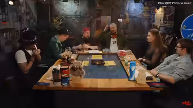 01:51:24Während der Stream geht, ruft der Streamer intensiv zur Einreichung von Fanart auf, egal in welcher Form, von MS Paint bis hin zu professionellen Kunstwerken. Diese sollen nach Abschluss des Streams in einem Sonderstream präsentiert werden. Gleichzeitig wird auf den Dr. Freud Shop und die laufende Crowdfunding-Kampagne für das Spiel hingewiesen. Das Merchandise sei essenziell, um zukünftige Projekte zu finanzieren. Des Weiteren wird erläutert, dass Krawall im Kiez ein sehr einsteigerfreundliches Setting ist, das von bis zu fünf Spielern plus Spielleiter gespielt werden kann und sich gut für One-Shots eignet.