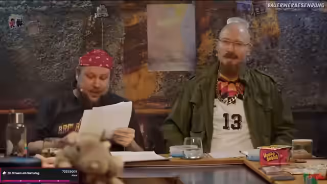 02:41:14Der Stream beginnt mit einer konfliktgeladenen Interaktion, bei der Streit wegen des Umgangs mit persönlichen Gegenständen, wie einer Klappmesser und Schuhen, eskaliert. Parallel dazu werden Alltagsaufgaben wie das Besorgen von Süßigkeiten und Medikamenten erwähnt. Die Szene wechselt in eine Rückblende, die das Jahr 1997 in Berlin einführt, wo der Charakter mit einem Freund namens Django unterwegs ist und eine Milchkanne mit Gulasch transportiert. Eine Ankündigung für eine Party am Abend für die Freunde Kevin und Borg wird gemacht, was die Handlung vorantreibt.