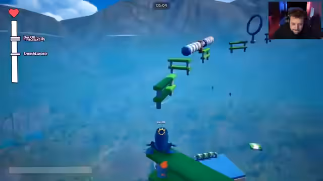 01:03:51Die Frustration über die kniffligen Plattform- und Kettensegmente des Spiels steigt weiter an. Anne, Smash Lunatic und der Streamer haben große Schwierigkeiten, den Fortschritt zu erzielen, während Lilly und Jen bereits weiter sind. Es werden verschiedene Taktiken erprobt, wie Bremsen im Sprung, um zu kontrollieren, wo man landet. Die Musik des Spiels wird als beruhigend, aber in Kontrast zum Gameplay stehend empfunden. Die Mitspieler ermutigen sich gegenseitig, besonders Franzi, die weit zurückliegt.