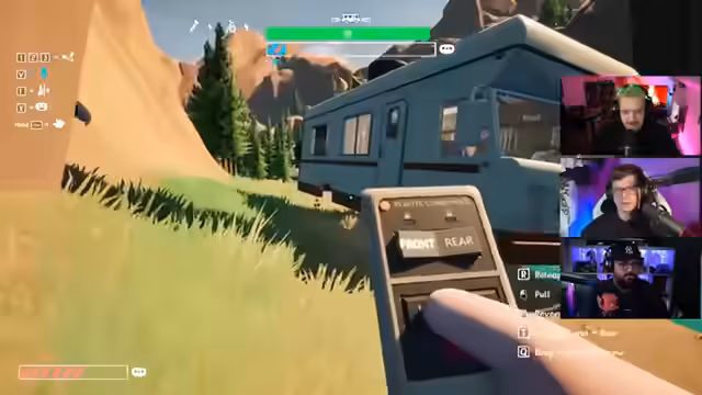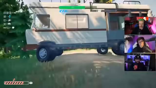01:57:44Nachdem Mike gerettet wurde, steckt der Wohnwagen auf einem Dornenbusch fest und die Reifen drehen durch. Die Gruppe versucht, den Wohnwagen mit der Seilwinde zu befreien. Olli befestigt die Seilwinde an einem Baum, während Mike die Fernbedienung bedient. Es stellt sich heraus, dass die Handbremse nicht gezogen ist und die hinteren Reifen sich nicht bewegen. Trotz wiederholter Versuche und dem Einsatz der Seilwinde bleibt der Wohnwagen festgefahren. Die Kommunikationsprobleme und die Schwierigkeiten bei der Koordination des Seilwinden-Einsatzes tragen zur Frustration bei. Es wird vermutet, dass das Spiel möglicherweise verbuggt ist, da der Wohnwagen sich nicht bewegt, obwohl alle offensichtlichen Probleme behoben zu sein scheinen. Die Situation bleibt angespannt, da die Gruppe versucht, eine Lösung für das feststeckende Fahrzeug zu finden.