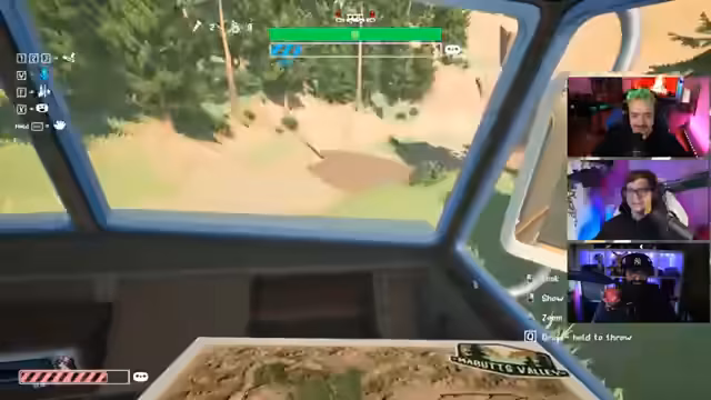 03:10:29Nachdem die schwierige Passage erfolgreich überwunden wurde und das Fahrzeug repariert ist, widmet sich das Team der Karte, um das nächste Ziel zu bestimmen. Es wird überlegt, ob ein Ausflug zum See oder direkt zur Todesschlucht unternommen werden soll. Trotz geringer Lebenspunkte entscheidet sich die Gruppe für die Todesschlucht, da dort viel zu entdecken sein könnte. Während der Fahrt dorthin kommt es zu erneuten Begegnungen mit Bären, die abgelenkt werden müssen, während Rampen aufgebaut werden, um Hindernisse zu überwinden. Die Navigation gestaltet sich schwierig, da die Karte bei einigen Spielern verbuggt ist. Dennoch setzen sie ihre Reise fort, immer auf der Suche nach dem besten Weg und im Austausch über die optimale Strategie.