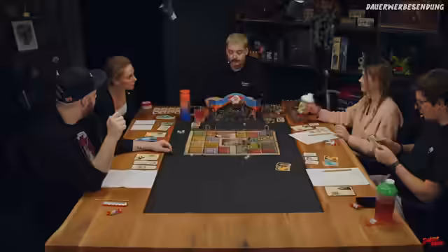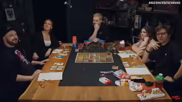 00:47:51Der Stream beginnt mit der Auswertung eines Kampfes, bei dem ein Spieler Schaden erleidet und sich mit Schilden verteidigen muss. Der Verlust von Körperkraftpunkten wird thematisiert. Ein weiterer Spieler schießt unabsichtlich auf einen Zivilisten, was humoristisch kommentiert wird, da dieser nur auf dem Weg zur Mittagspause war. Anschließend wird die Bewegung der Spielfiguren besprochen. Der Spieler Arthur hat die Möglichkeit, nach Fallen oder einem anderen Charakter zu suchen, was aber zunächst misslingt.