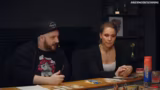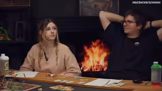 00:51:41Es kommt zu einem verbalen Schlagabtausch zwischen den Spielern, der ihre Rivalität aufzeigt. Der spielerische Aspekt wird durch humoristische Bemerkungen unterbrochen. Der Spielleiter leitet die Aktionen der Monster. Ein Spieler betritt einen neuen Raum und interagiert mit den dortigen Gegenständen. Es werden spielerische Entscheidungen getroffen, um den Raum zu erkunden.