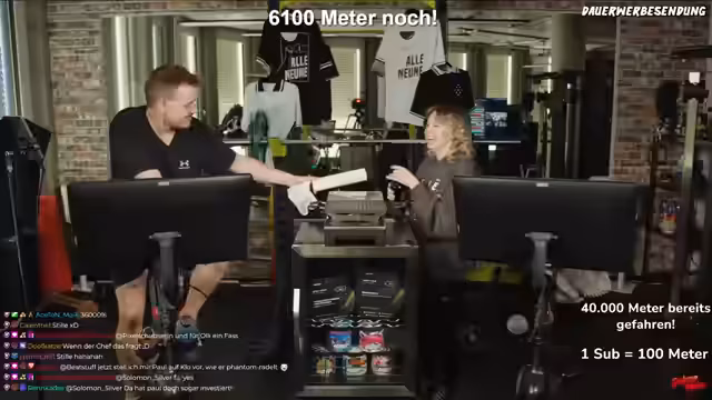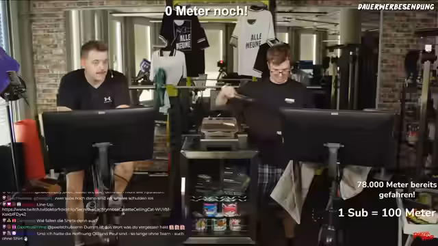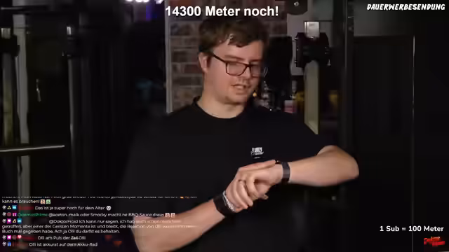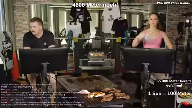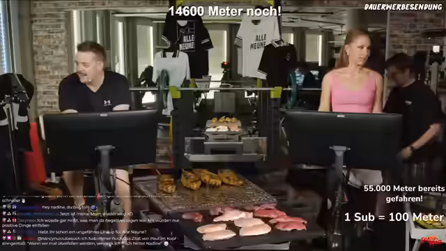 03:55:06Der Stream erreichte nach etwa vier Stunden mit Pausen ein beeindruckendes Ergebnis von 85 Kilometern auf den Fahrrädern, wobei im Hintergrund Raclette gegrillt wurde. Dies war die Premiere des 'Barbecue & Q&A-a-thons'. Der Streamer kündigte an, dieses Event wiederholen zu wollen, potenziell einmal monatlich oder alle zwei Wochen, um es zu einem regelmäßigen Format zu machen und die sportliche Aktivität mit dem direkten Austausch mit der Community zu verbinden.