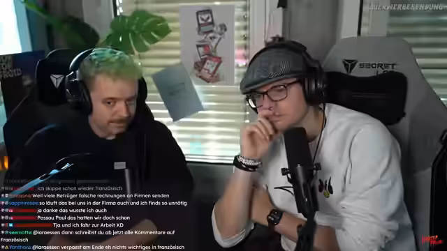 01:28:55Nachdem technische Schwierigkeiten mit dem Mikrofon behoben wurden und auf eine Handy-Kamera umgeschaltet werden musste, begann eine ausführliche Studiotour. Die Zuschauer erhielten Einblicke in das Set-Up, wo bereits Bildsettings und viel Technik aufgebaut waren. Es wurde das zweite Set gezeigt, wo Werwolf und Impro-Theater gespielt werden sollen, inklusive eines riesigen Greenscreens für Hintergrundeffekte. Auch der Essbereich, ein Dart-Bereich und der Casterdesk mit einem großen Teleprompter wurden präsentiert. Die Live-Regie, die alle Kameras der verschiedenen Sets vernetzt, wurde ebenfalls gezeigt. Es wurde erklärt, dass parallel zum Live-Programm Podcasts aufgenommen und in der Küche Koch-Challenges stattfinden werden. Die Tour endete im Gaming-Bereich, wo fünf Rechnerplätze für Multiplayer-Sessions zur Verfügung stehen, die alle direkt mit der Regie verbunden sind.