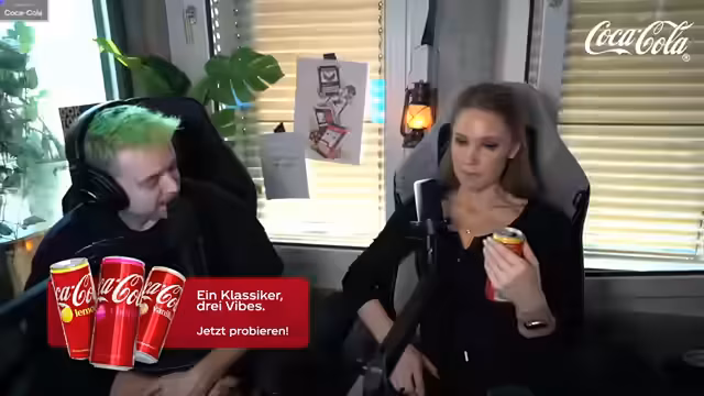01:52:35Nach einer kurzen Pause startete das gesponserte Segment mit Coca-Cola, bei dem die Streamer ihren 'Flavor-Typ' bestimmen sollten. Die Zuschauer diskutierten bereits im Chat über ihre bevorzugten Geschmacksrichtungen: Cherry, Lemon und Vanilla. Die Streamer probierten alle drei Sorten, beginnend mit Lemon, der neuesten Sorte. Der Streamer lobte die dezente Lemon-Note und empfand sie als sehr angenehm und erfrischend, sogar als besser als die reguläre Cola. Anschließend wurde Cherry Cola probiert, die als 'Knaller' und 'Jugend' beschrieben wurde, da sie den Streamer in seine Jugend zurückversetzte. Ein Ranking zwischen Cherry und Lemon wurde als schwierig empfunden, da es auf die jeweilige Stimmung ankomme: süß für Cherry, spritzig und erfrischend für Lemon. Die Vanille-Cola wurde als Nächstes probiert, wobei die Idee eines 'Coke Float' (Cola mit Vanilleeis) erwähnt wurde, als mögliche Inspiration für die Vanille-Sorte.
