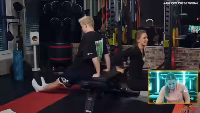 01:01:07Für den Trizeps-Training werden Dips an einer Bank oder Stuhl durchgeführt. Wichtig ist, dass die Ellenbogen eng am Körper bleiben und die Beine leicht gebeugt sind. Die Kraft sollte aus den Armen kommen, nicht aus der Hüfte. Danach folgt eine Übung für die Oberschenkelmuskulatur mit dem Namen 'Copenhagen Plank', wobei ein Bein auf einem Stuhl abgelegt wird und das andere Bein seitlich in der Luft gehalten werden muss. Nadine und Paul finden diese Übung sehr fordernd.