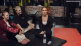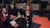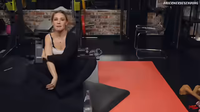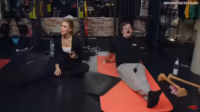 00:38:03Das Training konzentriert sich nun auf die Stärkung der Gesäßmuskulatur. Zuerst machen sie eine Übung im Vierfüßlerstand. Dabei wird ein Bein seitlich gegen den Widerstand des Bandes gedrückt, ähnlich als ob man gegen einen Deckel treten würde, während der Rücken gerade bleibt. Anschließend folgt eine Übung für den Rumpf, der 'Yankee Kicks'. Dabei wird aus einer liegenden Position ein Bein angewinkelt nach oben gezogen und ausgestreckt abgelassen. Nadine betont die Wichtigkeit einer festen Bauchspannung, um den Rücken zu stabilisieren.