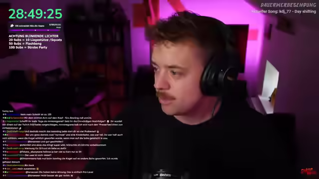 00:00:00Der Stream startet mit technischen Schwierigkeiten beim SRT-Signal, was zu einem Neustart führt. Es ist Sabaton Tag 4. Ein Goal wird vorgestellt: Ein Komplettset von Annes 9 Pins im Wert von 42 Euro kann gewonnen werden. Die Pins zeigen Motive wie einen Waschbären, einen Fuchs und ein Side-Shake, inklusive eines Tamagotchi-Waschbär-Pins mit Holo-Effekt. Es gibt eine Verlosung der Pins, bei der entschieden wird, ob direkt verlost wird oder auf das Ende des Frühstücks gewartet wird, um faire Chancen zu gewährleisten. Weitere Sub-Goals werden angekündigt, darunter Nils' Haare schneiden, Back-Ekel-Roulette, Polaris-Tickets und ein Spieleabend. Die Community zeigt Unterstützung durch Sub-Gifts, deren Verlängerung besonders wertgeschätzt wird. Es wird überlegt, wie viele Liegestütze zum Wachwerden gemacht werden sollen, bevor es in die Küche zum Aufräumen und Frühstücken geht. Die Pins können auf der Polaris bei Anna am Stand erworben werden oder später im Online-Shop. Die Verlosung wird auf später verschoben, um fair zu sein. Ein neues Sub-Goal wird gestartet: Olli schneidet Nils die Haare bei 6000 Subs. Die Haarfarbe für Ollis Mate wird ein dunkleres Pink sein. Nils erlaubt, dass seine Haare im Stream geschnitten werden, und bringt eigene Klamotten mit, um sich danach duschen zu können. Es werden Liegestütze zur Erwärmung gemacht, bevor es zum Bowling geht. Es wird angekündigt, dass ein Statement auf YouTube zum Bowling verfügbar ist.